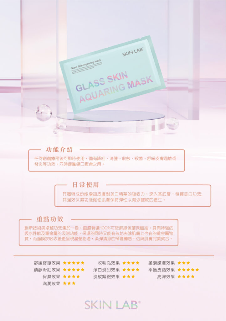 任何創傷療程後可即時使用,#玻璃水面膜 備有#降紅、#消腫 、#收歛、 #殺菌,舒緩肌膚過敏、#發炎等功效。
